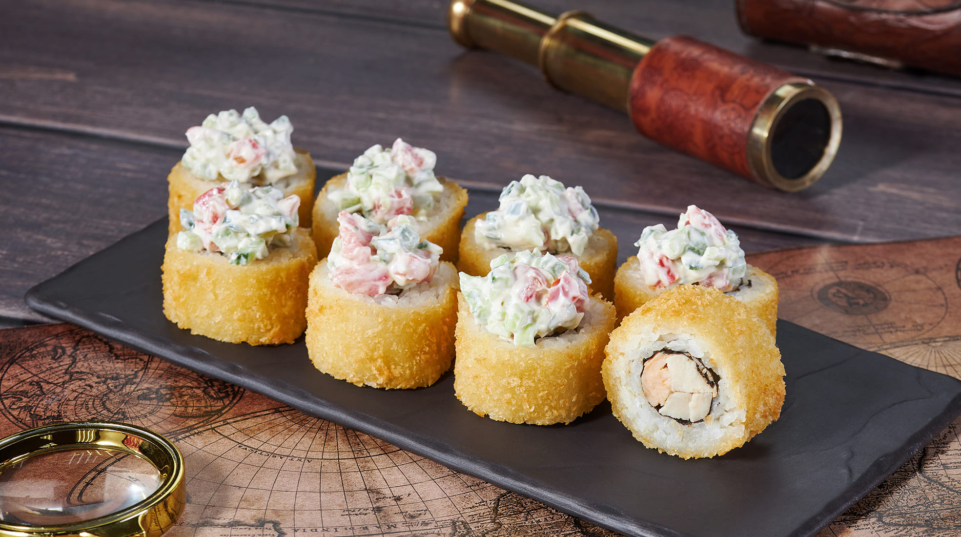 Состав: Курица, замес оливье, кляр, сухари панко, рис, нори. Не забудьте заказать имбирь, васаби и соевый соус. Они не входят в стоимость заказа. *Внешний вид блюда может отличаться от фото на сайте.