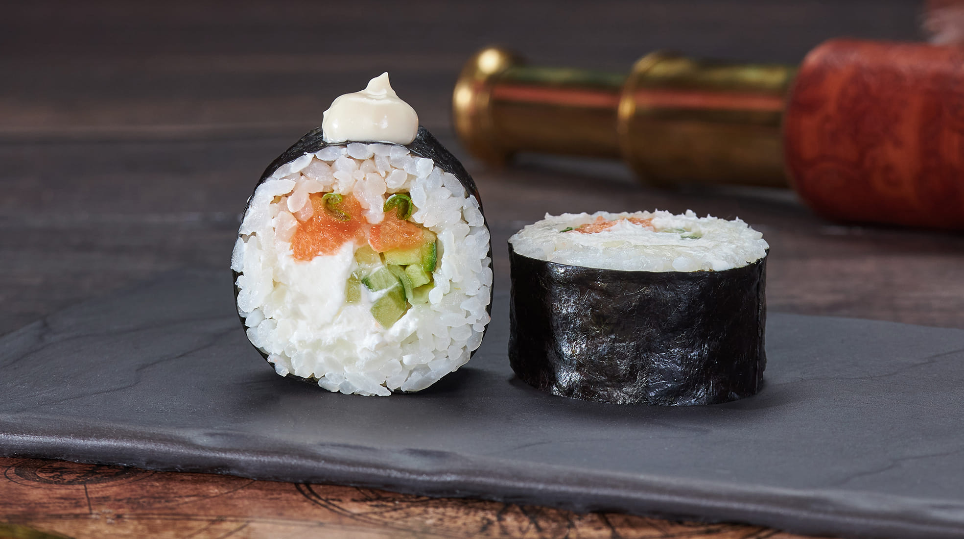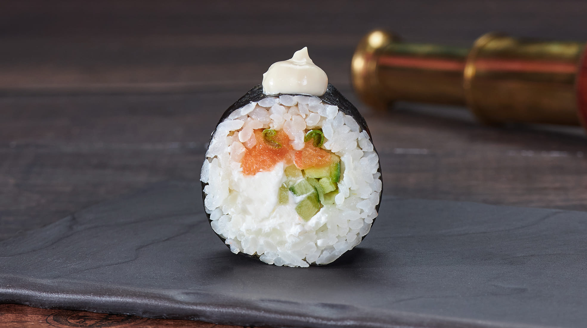 Состав: Лосось, крем чиз, соус японский майонез, огурец, лук зеленый, рис, нори. Не забудьте заказать имбирь, васаби и соевый соус. Они не входят в стоимость заказа. *Внешний вид блюда может отличаться от фото на сайте.