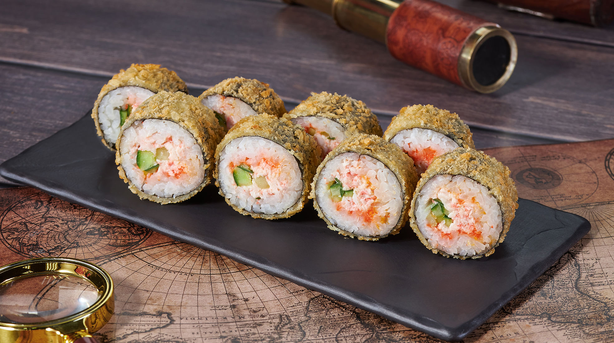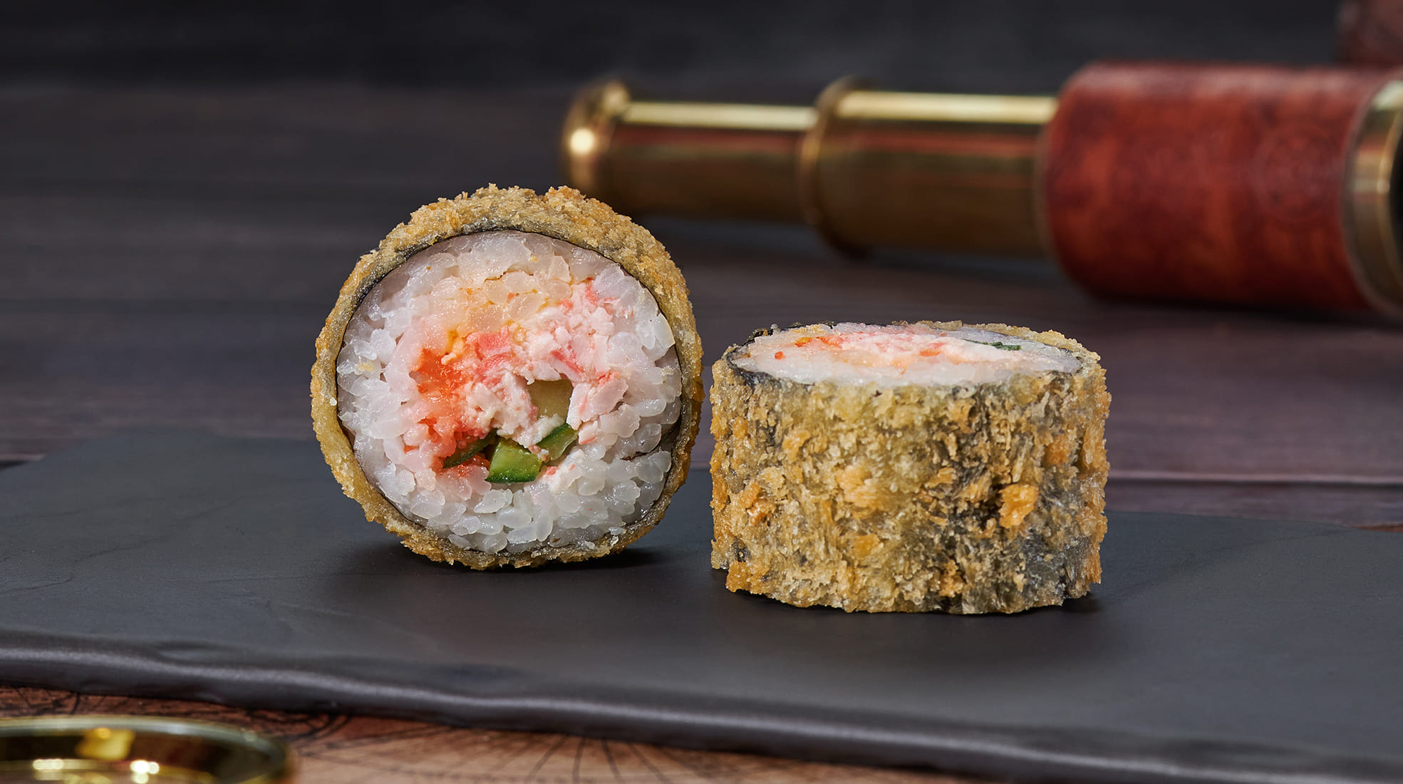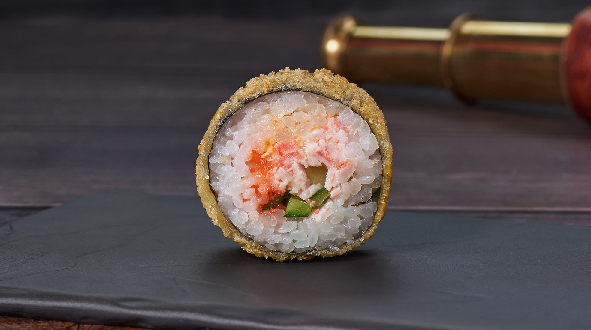 Состав: Краб-замес, икра масаго, огурец, спайси соус, кляр, сухари панко, рис, нори. Не забудьте заказать имбирь, васаби и соевый соус. Они не входят в стоимость заказа. *Внешний вид блюда может отличаться от фото на сайте.